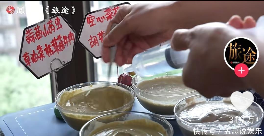他的吞咽功能也退化的很厉害,只能吃流食,视频中护工阿姨将几种食物绞成泥状,分装在几个碗中,用勺子喂到嘴巴里。